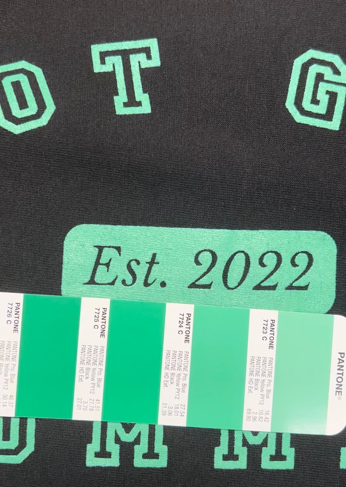 We can print up to 12 colors with our setup. With full-color screen printing and simulated process, we can use halftones to achieve the appearance of a much higher range. We use a Pantone color match system for print accuracy to ensure prints reflect your artwork as closely as possible.
